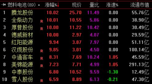 萬億級(jí)產(chǎn)業(yè)拉開序幕 燃料電池概念多股漲停