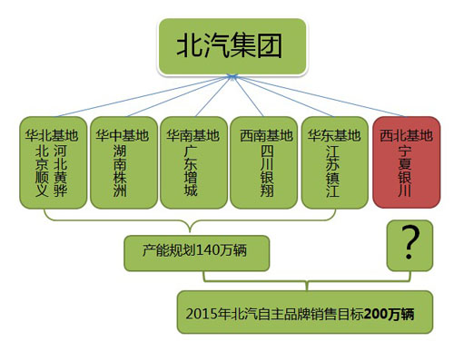 根據(jù)北汽與鎮(zhèn)江市簽訂的協(xié)議,北汽集團華東生產(chǎn)基地選址位于鎮(zhèn)江市丹徒區(qū),計劃總投資150億元人民幣。基地建設(shè)分兩期實施,一期主要生產(chǎn)SUV、MPV等車型,年產(chǎn)能15萬輛,產(chǎn)品主要面向華東地區(qū)及全國中高端消費市場;二期生產(chǎn)中高端乘用車、新能源汽車等車型及汽車發(fā)動機等核心零部件。兩期總產(chǎn)能規(guī)劃超過30萬輛,全部達產(chǎn)后,年銷售收入預(yù)計將達500億元。據(jù)內(nèi)部人士透露,北汽在銀川建廠很可能是生產(chǎn)SUV及皮卡產(chǎn)品。據(jù)悉,目前北汽在華北的北京紳寶工廠,主要生產(chǎn)紳寶品牌轎車;華中的湖南株洲基地,主要生產(chǎn)北京E系列和交叉型乘用車威旺;西南的北汽銀翔基地,主要生產(chǎn)乘用車、商用車、新能源車;去年開工的位于廣州增城的華南生產(chǎn)基地,主要生產(chǎn)SUV和MPV車型,形成了華北、華南、西南、華中、華東五大工廠布局。