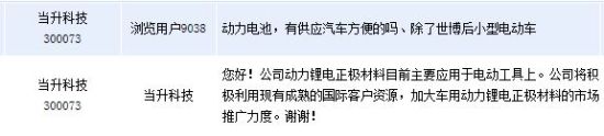 11月11日訊 當升科技(300073)周二下午在全景網互動平臺向投資者表示,公司動力鋰電正極材料目前主要應用于電動工具上。公司稱,將積極利用現有成熟的國際客戶資源,加大車用動力鋰電正極材料的市場推廣力度。當升科技主要從事鈷酸鋰、多元材料、錳酸鋰等小型鋰電、動力鋰電正極材料的研發、生產和銷售業務。