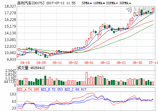 吉利汽車上半年凈利增長超100% 上調(diào)2017年全年目標至110萬輛