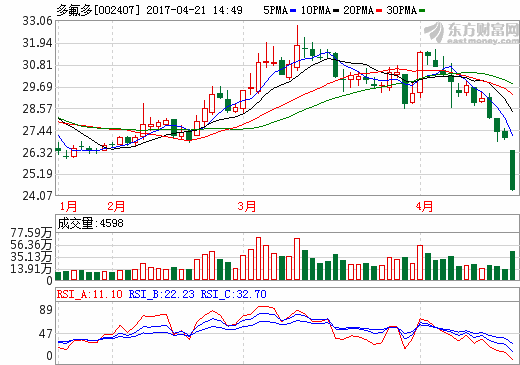 巨量封跌停創一年新低 多氟多一季度利潤同比下降38.4%