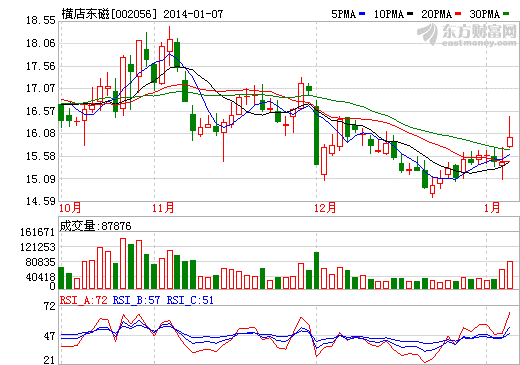 橫店?yáng)|磁(002056)1月6日晚間發(fā)布業(yè)績(jī)修正公告,將2013年凈利潤(rùn)由此前預(yù)計(jì)的“盈利2億元至2.4億元”上調(diào)為“盈利2.5億元至2.8億元”,上年同期為虧損2.2億元。