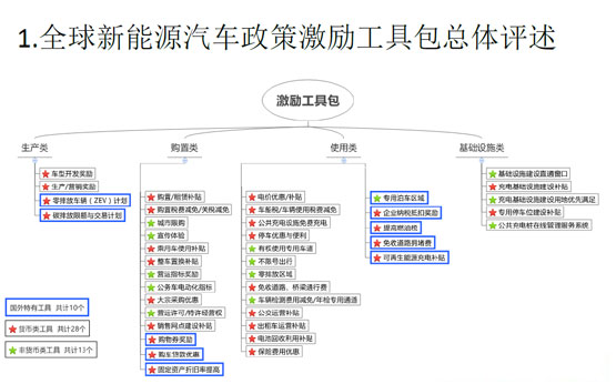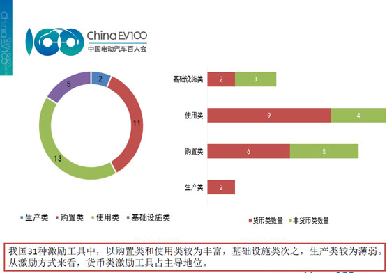 報告中提到,目前國內外主要通過貨幣類激勵推動新能源汽車的發展;且激勵工具主要集中在購置和使用環節,在生產研發以及基礎設施方面的激勵工具種類相對較少。同時,從市場驅動的角度上講,新能源汽車前期市場較小,政府大力促進新能源汽車的銷售,并完善車輛使用環境,將反過來推動企業的生產研發,從這個角度上講,目前大量的工具集中于車輛的購置和使用階段,符合新能源汽車推廣應用的階段性需求。但是,新能源汽車的推廣使用,必須依靠更為完善的充換電基礎設施的布局,而目前從全球看,在基礎設施建設運營上的激勵工具相對于車輛端的激勵,靈活性還不夠。