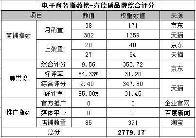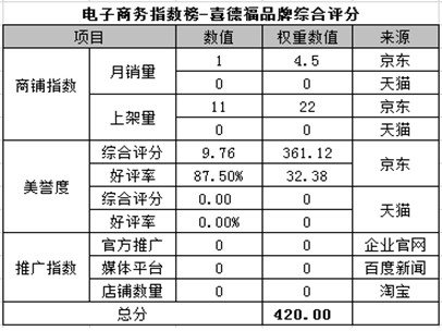 電商指數榜排名第九:喜德福