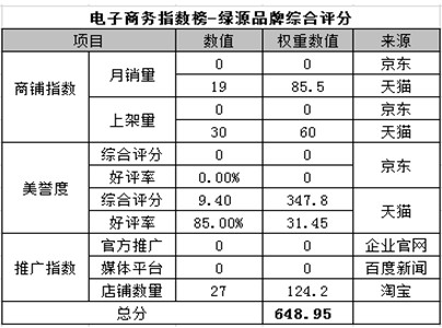 電商指數榜排名第二:綠源