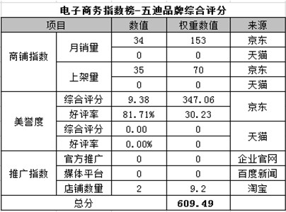 電商指數榜排名第三:五迪