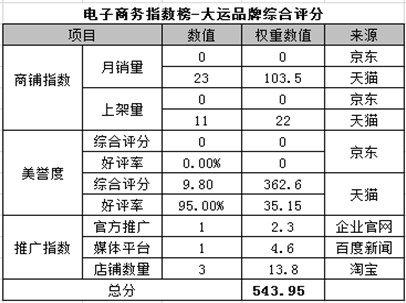 電商指數榜排名第五:大運
