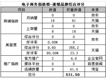 電商指數榜排名第七:速蝶