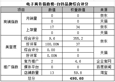 電商指數榜排名第八:臺鈴