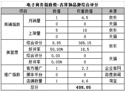 電商指數榜排名第十:吉祥獅