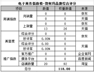 電商指數榜排名第十二:澳柯瑪