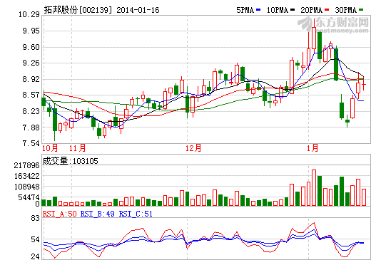 拓邦股份(002139)1月16日公告, 拓邦股份2014年1月16日收到深圳市科技創(chuàng)新委員會(huì)簽發(fā)的《深圳市科技創(chuàng)新委員會(huì)驗(yàn)收合格證書》(證書編號(hào):深科技創(chuàng)新驗(yàn)字A2013230):公司“納米磷酸鐵鋰動(dòng)力電池及電池管理系統(tǒng)項(xiàng)目”成功通過深圳市科技創(chuàng)新委員會(huì)驗(yàn)收。