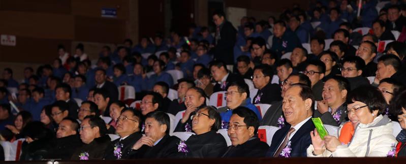 下午1時58分,慶典大會在氣勢高昂、催人奮進的舞曲《筑夢圣陽》中正式拉開序幕。