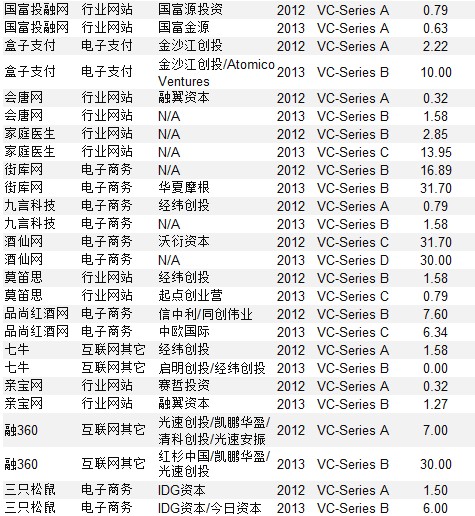 表2 2013年國內互聯網行業企業重大VC/PE融資案例