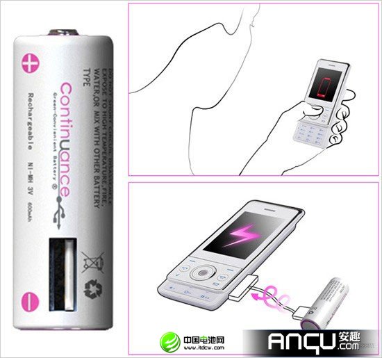 現在的移動電源五花八門,什么樣的都有,而曾經被用在電子產品上的5號電池則成為了昨日黃花,似乎早已被鋰電池所淘汰。然而屌絲也有逆襲成功之時,五號電池如今也大翻身,搖身一變成了移動電源。現在就有這樣一種概念電池被設計出來,它的外觀跟五號電池沒有區別,但是底部多了一個USB接口,通過這個接口你就可以讓五號電池為移動設備提供電流了,不過它真的能當五號電池來用嗎?成本要多少錢呢?
