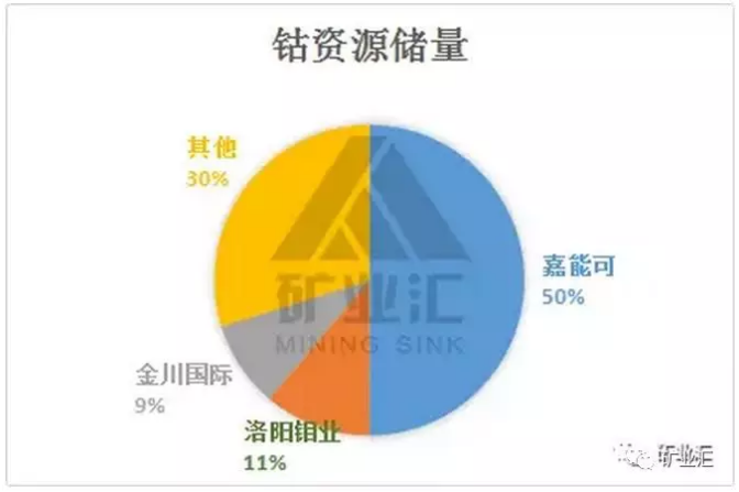 全球鈷礦企業(yè)中,儲(chǔ)量第一位的是全球綜合性的礦業(yè)巨頭嘉能可,它的鈷儲(chǔ)量為250萬噸。