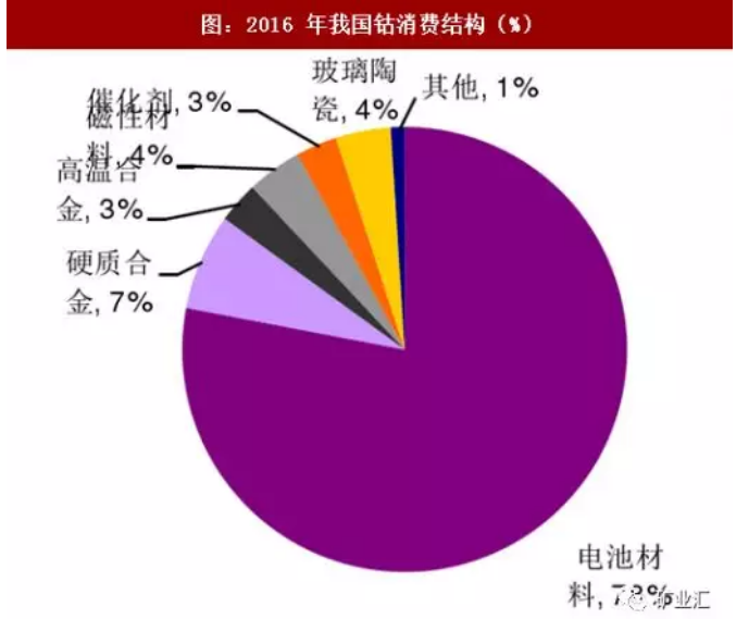 2016年中國(guó)鈷消費(fèi)量達(dá)到4.6萬噸,同比增長(zhǎng)6.9%。其中,電池在中國(guó)鈷的消費(fèi)領(lǐng)域中占比由2006年的45%上升為目前的78%。