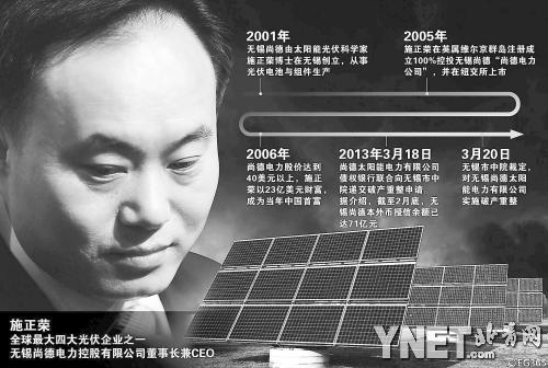 最后無錫政府提出了折中方案,政府施以援手,但需要無錫尚德創始人施正榮用個人所有財富進行擔保。但這種方案遭到了施正榮的拒絕,施只想讓無錫尚德破產,保住上市公司尚德電力,這樣就可以甩掉債務包袱。“政府領導聽到施正榮的方案,幾近震怒。施博士不想共進退,這是政府不能接受的。”一位知情人士告訴記者。