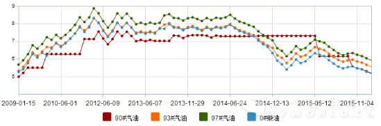 第三個原因,也是比較獨特的原因,就是車用天然氣和柴油的價格差越來越小。從2015年初直到現在,國內汽柴油價格一共調整了20次,其中上調有7次,13次是下調,最近的一次調整是2016年1月14日(也是下調)。油價的大幅下調,使得天然氣相對于油價的價格差大大縮小,天然氣車輛使用經濟性的優勢不復存在。對于商用車用戶而言,這無疑大大降低了天然氣車輛對他們的吸引力。