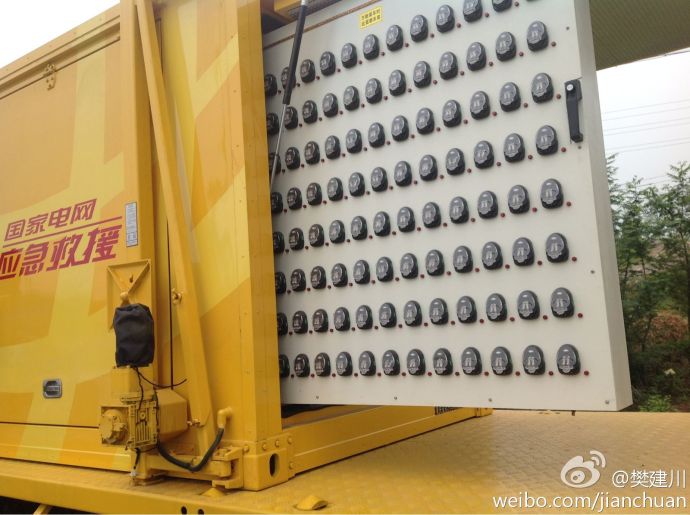 4月20日四川雅安蘆山發(fā)生7.0級地震,因?yàn)橥k姡用窈途仍藛T手機(jī)充電是個問題,而國家電網(wǎng)提供的這部手機(jī)充電汽車,機(jī)動性好,可以同時為2000部手機(jī)充電,真能解決燃眉之急。