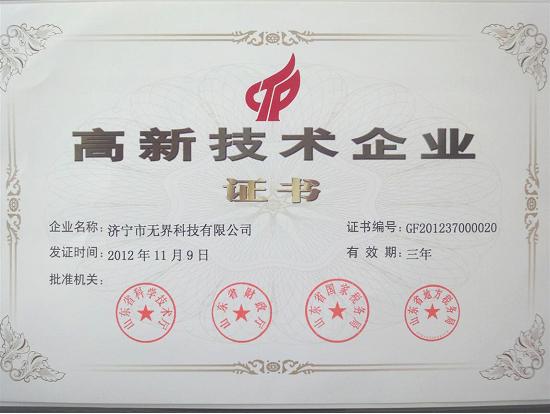 根據(jù)《高新技術(shù)企業(yè)認(rèn)定管理辦法》、《高新技術(shù)企業(yè)認(rèn)定管理工作指引》以及《關(guān)于高新技術(shù)企業(yè)更名和復(fù)審等有關(guān)事項(xiàng)的通知》等相關(guān)規(guī)定,在經(jīng)過各級審核以及專家評審之后,濟(jì)寧無界科技有限公司順利通過了高新技術(shù)復(fù)審并于近日取得高新技術(shù)企業(yè)證書。