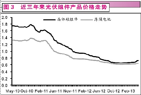 為了應對光伏行業的危機,我國發改委一改此前對光伏產業的態度,轉而進行扶持。而隨著中國等新興國家光伏產業的快速發展,業內測算未來幾年全球新增光伏裝機容量將主要來自于新興市場國家。而且去年以來我國光伏企業大面積關停倒閉,此前預計上馬的項目也紛紛擱置,被動收縮產能令供給端在短時間內反而難以大幅增長,“剩”下的光伏企業迎來業績拐點。一方面是新需求端口被打開,另一方面是供給被壓制,所以從數據上分析,記者認為歐洲“雙反”影響漸弱,即便是對歐洲市場出口最悲觀預計的5~8GW的銷售缺口,該缺口也將得到中國、日本等新興國家新增需求的彌補。比如國內去年審批“金太陽工程”,第一期1.7GW,剩余的1.2GW將在2013年6月30日并網;第二期2.8GW,2013年底前完成。而與此同時,歐洲市場的組件產能只有2~4GW,無法滿足歐洲所有需求,因此即使“雙反”結果非常不利,中國組件廠商仍有機會在包括歐盟在內的其他國外市場拿到部分份額。比如在晶澳太陽能的財務說明會中,公司高管明確指出,晶澳太陽能一季度業績有所起色,得益于在日本銷售出更多組件及在新興市場的擴張。