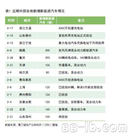 一季度中國(guó)新能源汽車(chē)產(chǎn)銷(xiāo)兩旺,并非是來(lái)自于新能源汽車(chē)的價(jià)格等因素的變化,主要的力量還是來(lái)自于中國(guó)政策的推動(dòng),特別是各地在執(zhí)行上的加大力度,跟據(jù)高工鋰電產(chǎn)業(yè)研究所(GBII)最近的調(diào)研,近期中國(guó)各地都集中出現(xiàn)了新增新能源汽車(chē)投運(yùn)的情況,集中表現(xiàn)在公交領(lǐng)域,值得一提的是,之前表現(xiàn)相對(duì)平平的地方都有了新的突破,哈爾濱,濱州等(表1)。