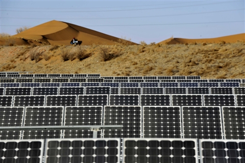 寧夏中衛市依托沙漠日照充足,打造沙漠里的“太陽能硅谷”。 新華社記者 王鵬 攝