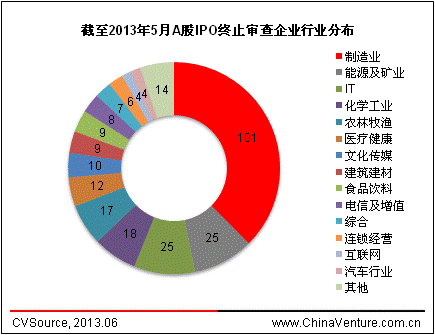 圖1 截至2013年5月A股IPO終止審查企業(yè)行業(yè)分布