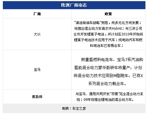 歐洲柴油車份額逐年提高,如西歐柴油乘用車07年的市場(chǎng)份額已達(dá)53.3%。歐洲車企在柴油車技術(shù)上處于領(lǐng)先水平。目前混合動(dòng)力為重點(diǎn)發(fā)展方向。