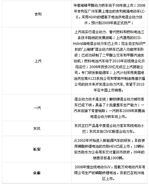據(jù)統(tǒng)計(jì),國內(nèi)至少有30家客車企業(yè)已涉足新能源車研發(fā);轎車方面,六大汽車集團(tuán)以及奇瑞、吉利、比亞迪都爭(zhēng)相研發(fā)新能源車,企業(yè)數(shù)量總計(jì)超過40家。但中國新能源汽車產(chǎn)量小,投入商業(yè)化生產(chǎn)的產(chǎn)品較少,政府產(chǎn)業(yè)發(fā)展規(guī)劃和配套政策尚不明晰。2008年底首次出臺(tái)了新能源車補(bǔ)助政策,即:將在13個(gè)城市開展節(jié)能與新能源汽車示范推廣試點(diǎn)工作,并明確中央財(cái)政將對(duì)購置新能源汽車給予一次性補(bǔ)助。
