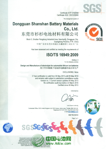 近日,東莞市電池材料有限公司(電解液)已通過ISO/TS16949認(rèn)證,據(jù)悉,該認(rèn)證的獲得是東莞杉杉在汽車電池材料發(fā)展史上一個(gè)重要里程碑,標(biāo)志著東莞杉杉的電解液產(chǎn)品品質(zhì)已經(jīng)走在全球最前沿,也再次印證了東莞杉杉電解液在新能源汽車電池材料領(lǐng)域的技術(shù)領(lǐng)導(dǎo)地位。