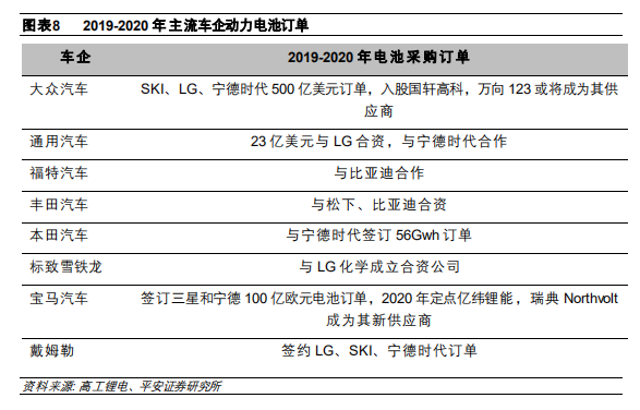 從客戶角度,電池供應(yīng)商呈現(xiàn)兩超多強(qiáng)的格局。現(xiàn)階段 LG 和寧德時(shí)代是車企的主要供應(yīng)商,而三星、SK、松下是次要供應(yīng)商,LG 基本上是所有車企的主要供應(yīng)商,寧德時(shí)代已經(jīng)成為接近一半車企的主要供應(yīng)商。
