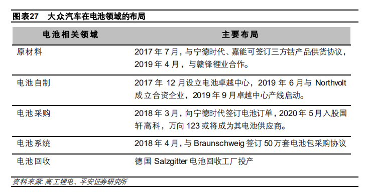 一是:德國大眾,國內比亞迪、長城等,以自制電池為主要方向,同時對外采購。