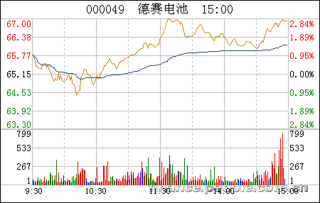 德賽電池今日開盤一路走高,收盤漲2.72%,收于66.92元。