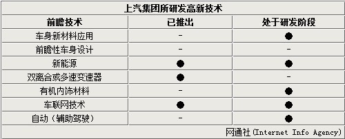 近幾年造車工藝及科技的不斷升級(jí),已推出了多項(xiàng)全新技術(shù),目前全球各大車企均將主要研發(fā)項(xiàng)目集中在了7項(xiàng)前瞻技術(shù),其中上汽集團(tuán)已推出了新能源、雙離合自動(dòng)變速器和車聯(lián)網(wǎng)三項(xiàng)技術(shù),同時(shí)車身新材料應(yīng)用、有機(jī)內(nèi)飾材料和自動(dòng)(輔助駕駛)也已處于研發(fā)階段,另有亮相也在升級(jí)過程中。
