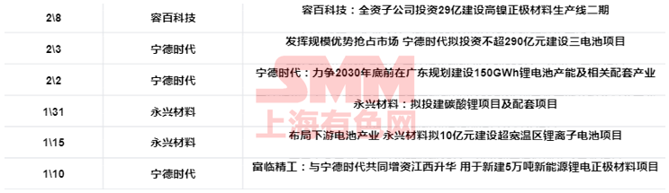 1月31日,在六氟磷酸鋰方面屢刷存在感的永興材料,其全資子公司擬總投資不超過11.25億元投建年產2萬噸電池級碳酸鋰項目、180萬噸/年鋰礦石高效選礦與綜合利用項目及鋰礦資源系列綜合價值提升研發項目;控股子公司花橋礦業投資建設白市村化山瓷石礦年產300萬噸鋰礦石技改擴建項目。