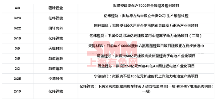 因此,在新能源汽車景氣度高漲的當下,作為新能源汽車動力核心的鋰電池,也深受一眾企業的青睞,在過去的7個月間,我國動力電池裝車量累計63.8GWh,同比累計上升183.5%。其中磷酸鐵鋰電池裝車量累計28.0GWh,占總裝車量43.9%,同比暴漲333.0%。在如此形勢大好的背景下,不少企業紛紛開始加速布局鋰電產能。以下是SMM根據時間軸整理的今年以來企業在鋰電領域的擴產情況。
