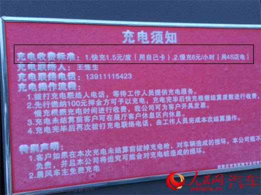 啟辰北京東風(fēng)南方大興4S店充電樁上標(biāo)示充電收費(fèi)標(biāo)準(zhǔn)