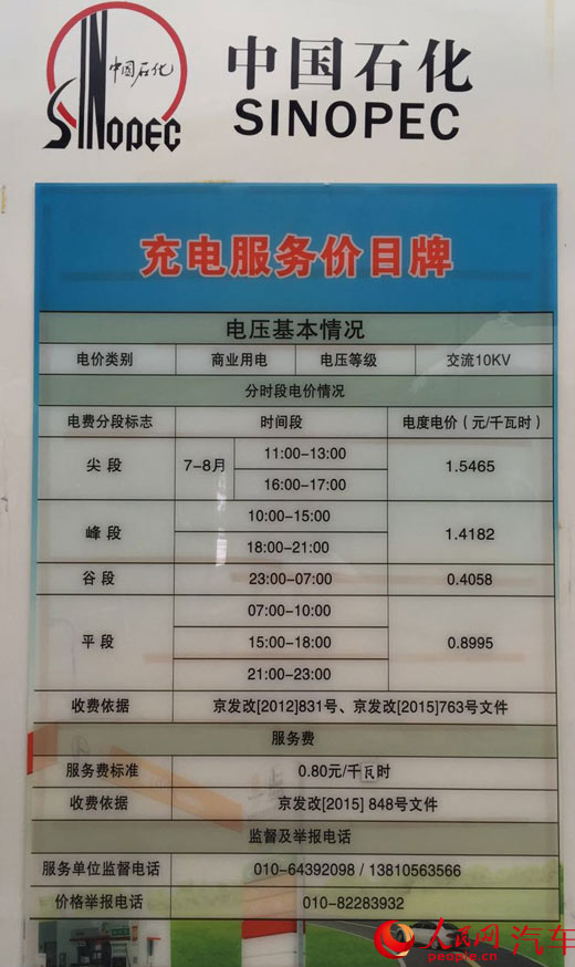 中國石化充電服務(wù)價(jià)目牌