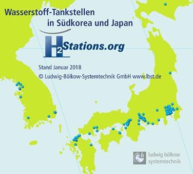 圖2 日本和韓國的加氫站