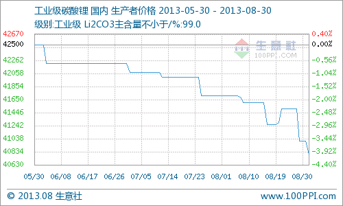 據(jù)生意社大宗榜監(jiān)測(cè)數(shù)據(jù)顯示,本月末工業(yè)級(jí)碳酸鋰出廠均價(jià)40800元/噸,價(jià)格下行2.19%。本月中上旬碳酸鋰價(jià)格一直較為平靜,可下旬開(kāi)始國(guó)內(nèi)市場(chǎng)部分碳酸鋰價(jià)格出現(xiàn)小幅下滑,但大多依舊維穩(wěn)。