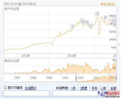 2011年至2013年6月移動電源關注度