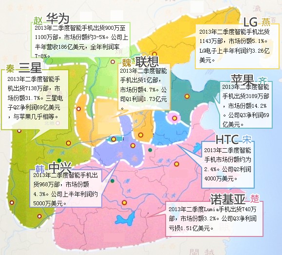 所以,如今的硬件市場遠未到格局鼎定的時刻。三星和蘋果占據了一定優勢,其他人也有各自的機會,甚至在前八名之外的廠商, 也都有迎頭趕上的可能。這有些像戰國時期的局面。西秦東齊實力占優,其他國家也都有革弊迎新的機會。生死存亡之局,誰都不甘心退出舞臺。