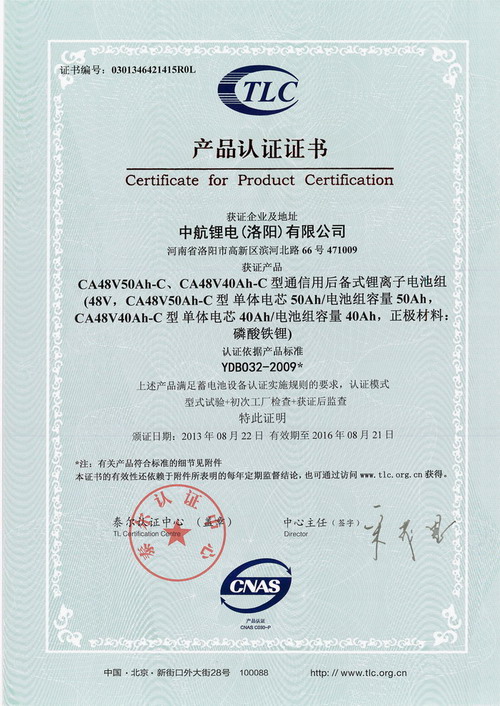 8月30日,中航鋰電成功獲得CA48V50Ah-C、CA48V40Ah-C型通信用后備式鋰離子電池組泰爾認(rèn)證證書,這標(biāo)志著公司CA48V50Ah-C、CA48V40Ah-C型通信用后備式鋰離子電池組獲得通信行業(yè)國家級(jí)認(rèn)可,為公司開拓通信行業(yè)市場奠定了堅(jiān)實(shí)基礎(chǔ)。
