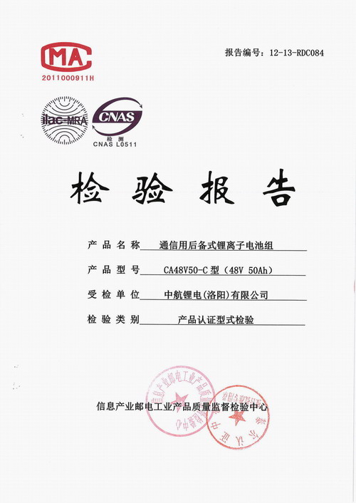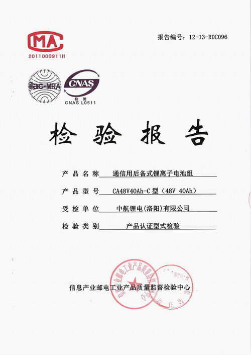 CA48V 50Ah-C、CA48V40Ah-C型通信用后備式鋰離子電池組成為公司通信領(lǐng)域首次通過國家級(jí)認(rèn)證的電池模塊產(chǎn)品,填補(bǔ)了公司電池模塊產(chǎn)品認(rèn)證空白,為公司進(jìn)軍通信領(lǐng)域提供了有力保障。