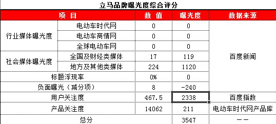 市場表現一直略顯低調的立馬,在第三季度起始階段進入榜單前八名,不難看出,其在網絡平臺的主動宣傳方面還稍顯不足,媒體曝光度方面也表現平平,不論品牌還是產品,都沒有在網絡媒介上過多表現,還因出現一些負面信息而對口碑排名產生一定影響。