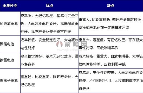 前瞻產業研究院發布的《2013-2017年中國鉛酸蓄電池行業市場前瞻與投資戰略規劃分析報告》研究顯示,鉛酸蓄電池的主要替代品包括鎳鎘電池、鎳氫電池和鋰離子電池等,不同電池各具優缺點,具體分析如下。
