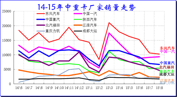 由于15年政府審批效率下降,項(xiàng)目審批而不開工的較多,上半年的中重卡屬于休眠期,目前經(jīng)濟(jì)也極度不景氣,各家3-8月銷售的表現(xiàn)均很差。