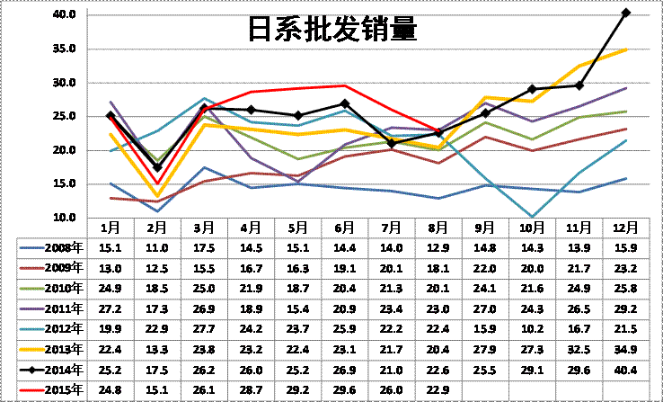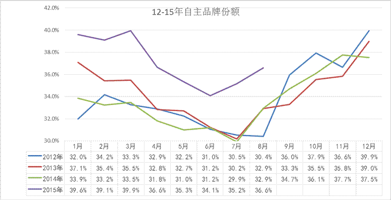 由于14年初的自主品牌出現(xiàn)起步低迷的現(xiàn)象。15年自主品牌表現(xiàn)超強(qiáng)。日系的4-7月走勢較強(qiáng),成為突出表現(xiàn)的唯一車系,這也是日系的產(chǎn)品根基較深,SUV新品市場認(rèn)可度高的結(jié)果。